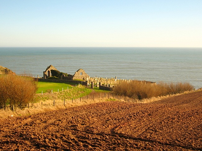 Cowie Chapel (St Mary’s of the Storms), aka the chapel of St. Mary and St. Nathalan, Cowie, by Stonehaven, Aberdeenshire. Photo: Martyn Gorman, CC BY-SA 2.0 <https://creativecommons.org/licenses/by-sa/2.0>, via Wikimedia Commons