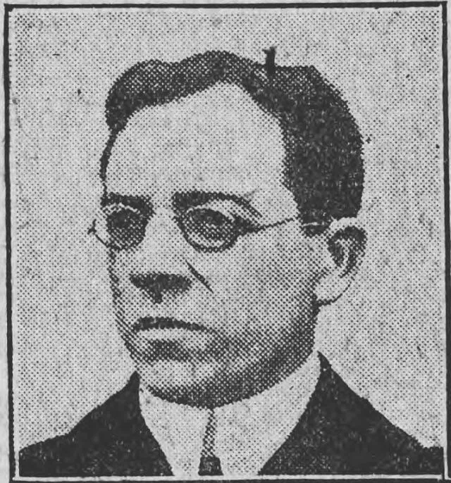 Black and white portrait of John James Williams, a Welsh bard and writer, wearing round glasses and a formal suit.